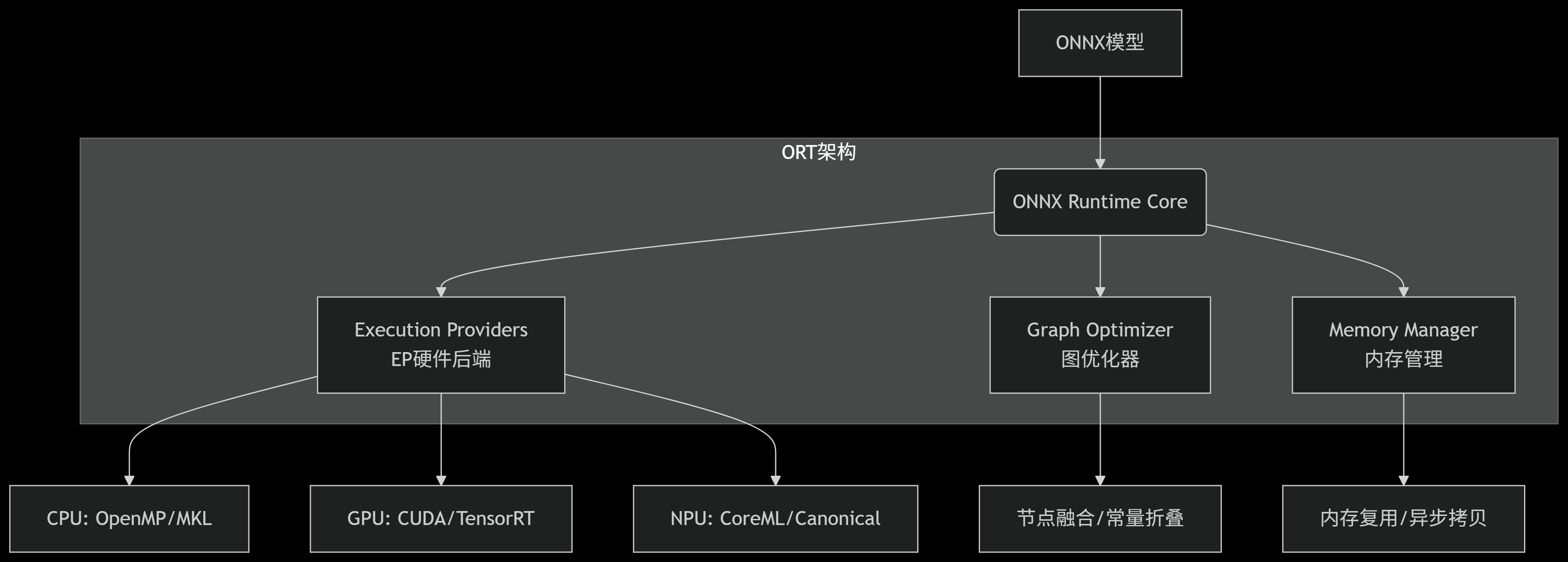 | 硬件交互 | 无直接硬件交互 | 通过EP对接CUDA/TensorRT等硬件SDK |